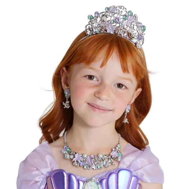 Shower treasures untold on any Little Mermaid outfit with this breathtaking jewelry set designed to complement our Ariel costume collection. A silvery necklace with sea life filigree, faceted gems, and faux pearls, is matched by shell earrings with Flounder bobs.