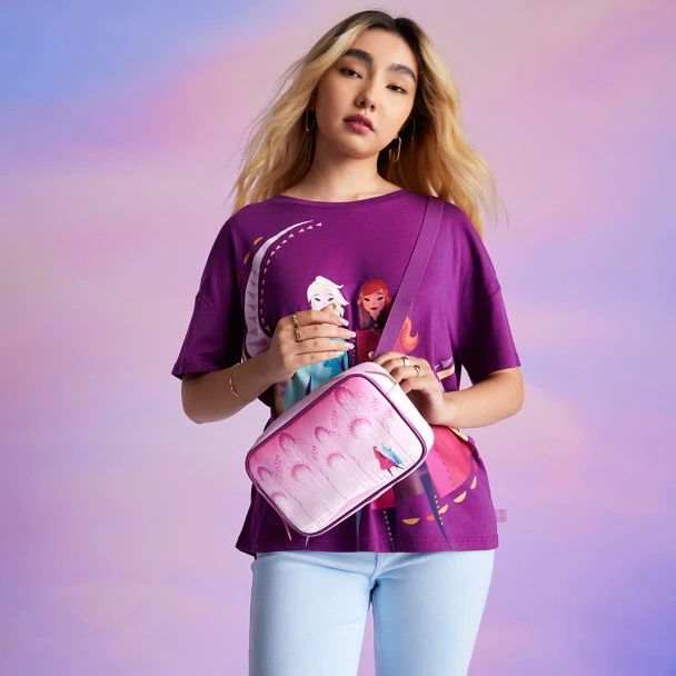 Designed in collaboration with Disney artist Brittney Lee, this beautiful hip pack features artwork of Anna and Elsa inspired by Disney’s Frozen 2. This colorful carryall has a spacious compartment, goldtone hardware and an adjustable waist belt. It’s perfect for your trips to the enchanted forest and beyond.