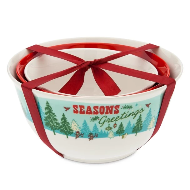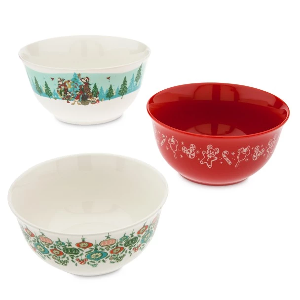 Mix up some delicious holiday treats with this Christmas-themed bowl set. This set includes three different sized bowls each with their own festive artwork of Mickey and his friends.