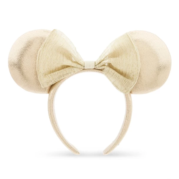 Like Minnie Mouse, you’ll be a shimmering, timeless classic in this ear headband with padded pearlescent lamé ears and coordinating headband, all topped with an oatmeal shear fabric bow.