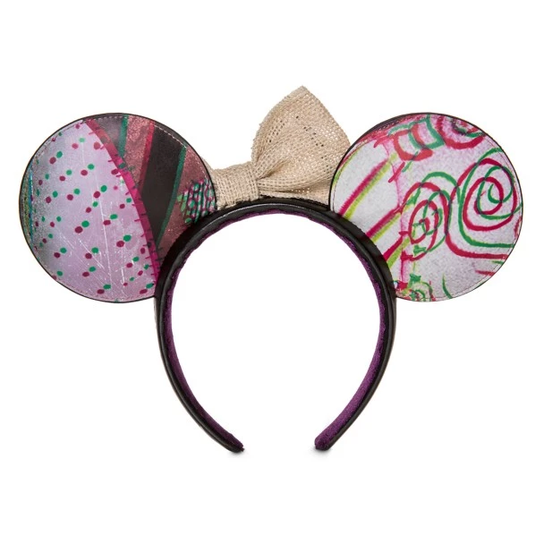 Sally, Jack Skellington’s rag doll sweetheart in Tim Burton’s The Nightmare Before Christmas, provides the inspiration for this ear headband. The simulated leather design is an abstracted take on her pieced look, while her name is embroidered on the outside of the headband.