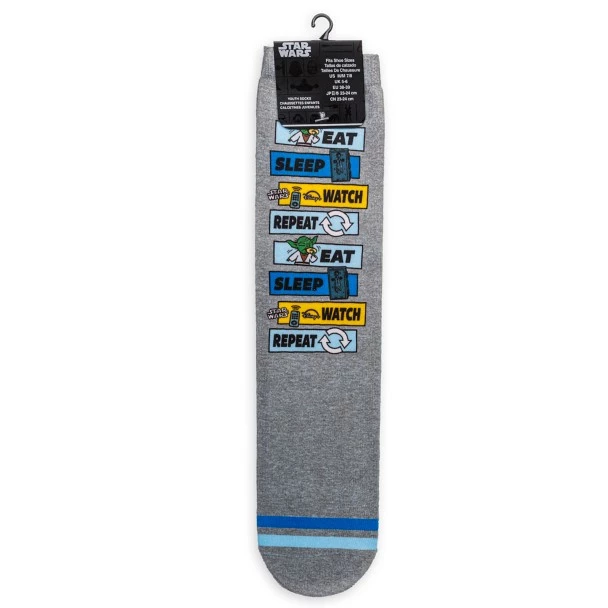”Eat. Sleep. Watch. Repeat.” Your child will love to slip on these Star Wars Marathon socks while watching their favorite Star Wars films and series. Adorable and funny art celebrates true fandom with Yoda enjoying a snack, fun icons and the Star Wars logo. Put them on and turn on the fun.