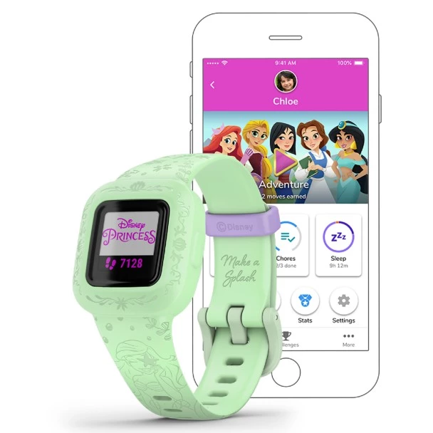 - Disney The Little Mermaid kids fitness tracker includes an interactive app experience that lets kids explore magical kingdoms alongside their favorite Disney Princesses (requires Garmin Jr. app loaded on parent’s compatible smartphone paired to vívofit jr. 3)