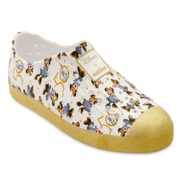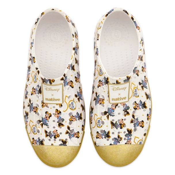 You’ll be in step with The World’s Most Magical Celebration when wearing these waterproof shoes created especially for the Walt Disney World 50th Anniversary by Native Shoes. Minnie is all smiles on the allover design of this fashionable footwear that features injection molded rubber construction.